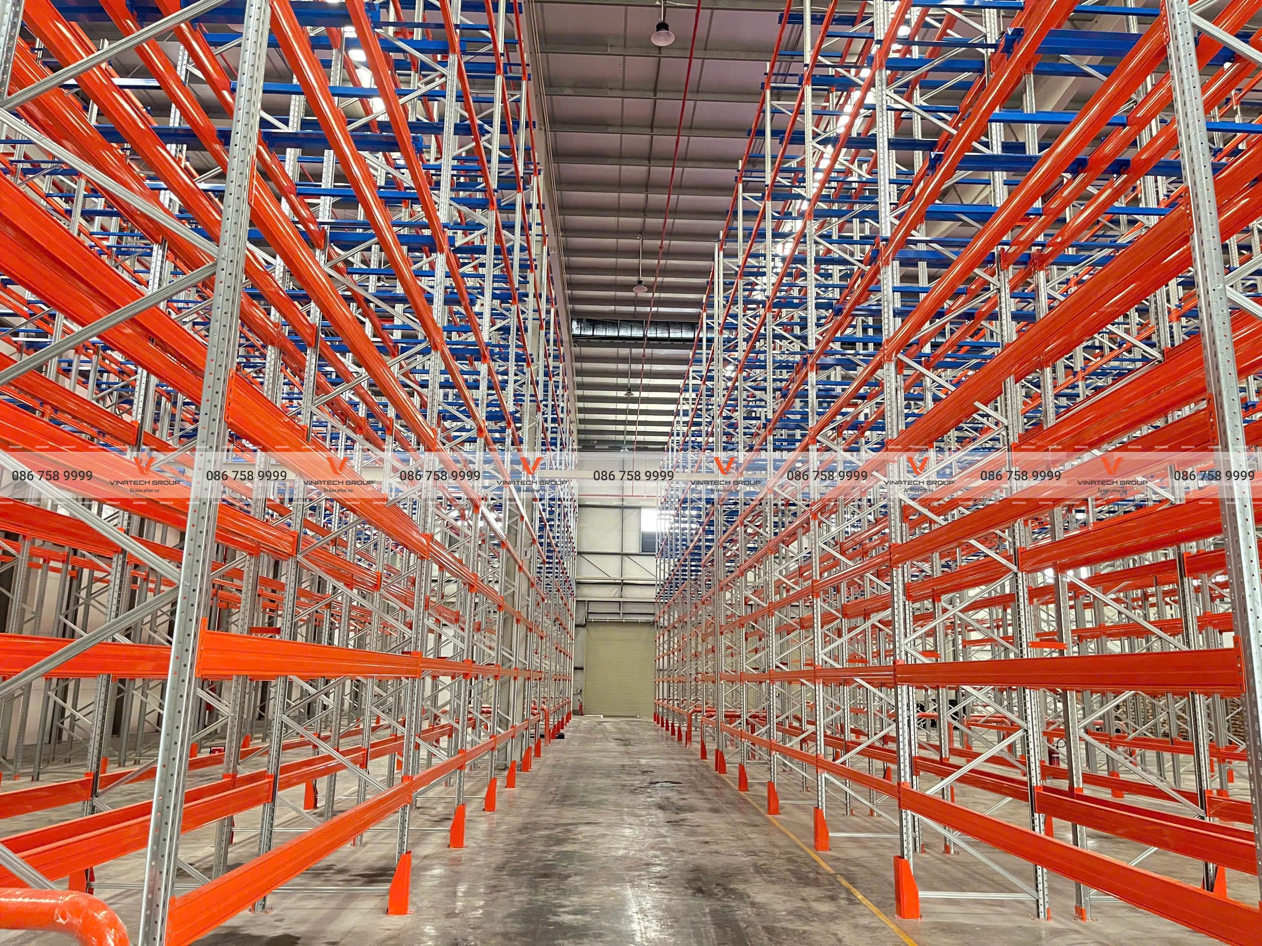 - Chiều sâu dãy kệ: 5–10 pallet liên tiếp