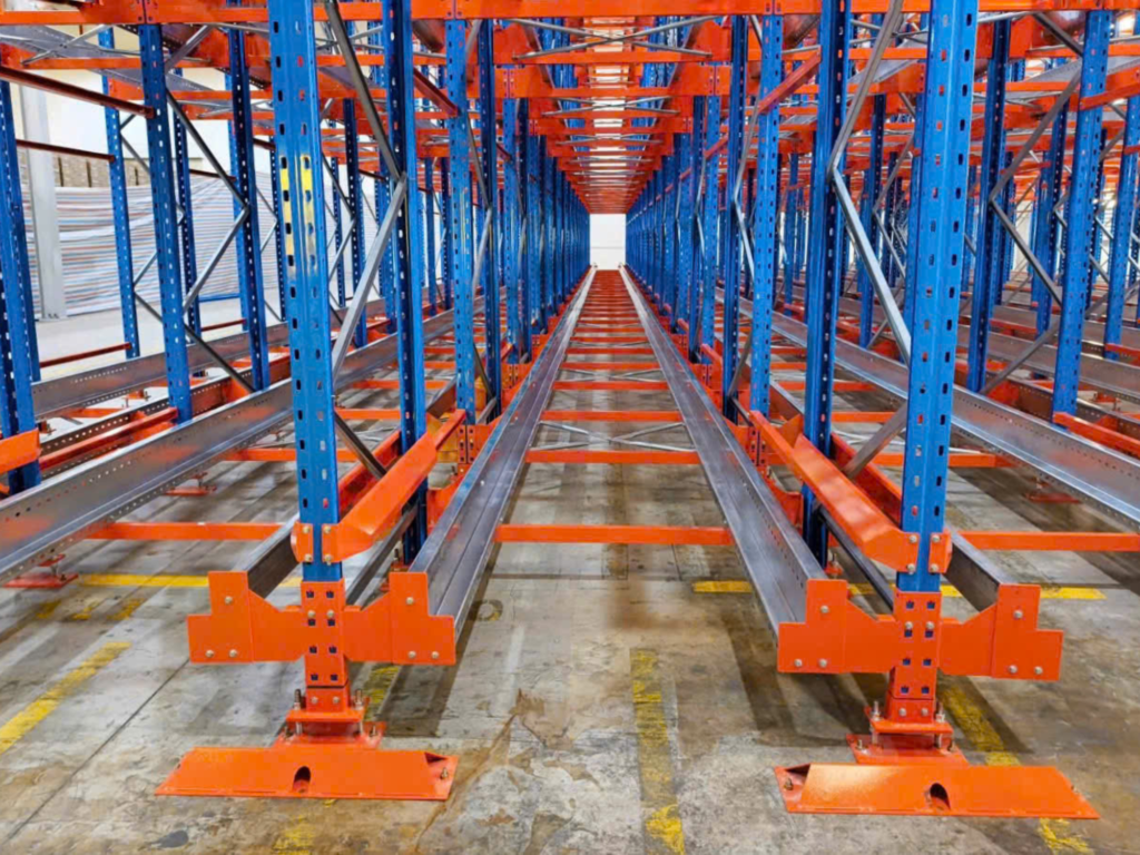 - Tối ưu hóa không gian: Tăng mật độ lưu trữ lên đến 80%, loại bỏ lối đi bên trong rãnh kệ, tận dụng tối đa chiều sâu và chiều cao kho.